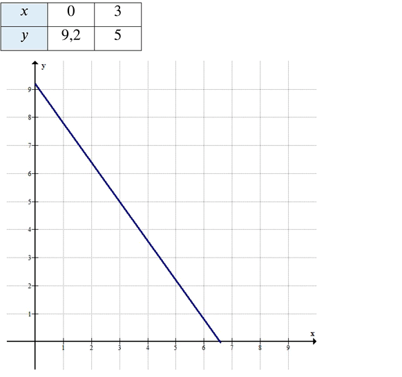 Из уравнения \( y = 9{,}2 — 1{,}4x \):