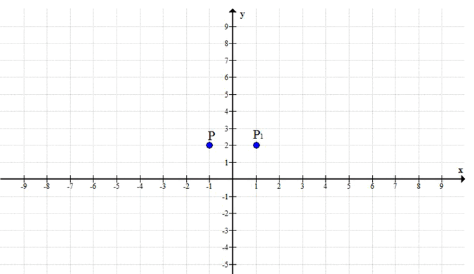 Следовательно, точка, симметричная точке Р(-1; 2) относительно оси ординат, имеет координаты \( P'(1; 2) \).