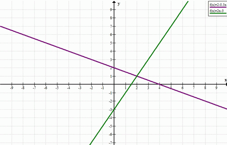 { 0,5x — 2y = 0 → { 2y = 0,5x → { y = 0,25x