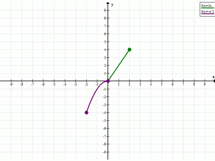 \( f(x) = \begin{cases} -x^2, & \text{если } -2 \le x \le 0 \\ 2x, & \text{если } 0 < x \le 2 \end{cases} \)