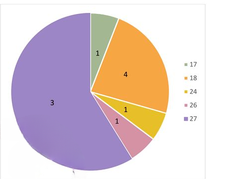| Результат измерения (сумма мест прыгунов) | 17 | 18 | 24 | 26 | 27 |