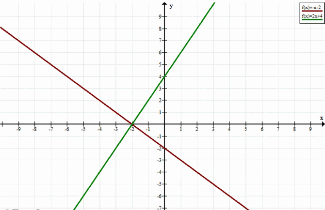 г) x+y=-2, 2x-y=-4.