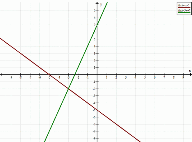 а) x+y=-5, 3x-y=-7;