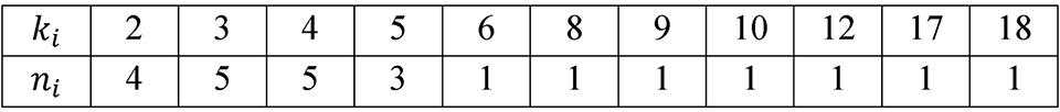 Составим таблицу распределения (значение \( k_i \) и его частота \( n_i \)):