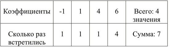 б) Составьте таблицу распределения коэффициентов, найденных в пункте а).