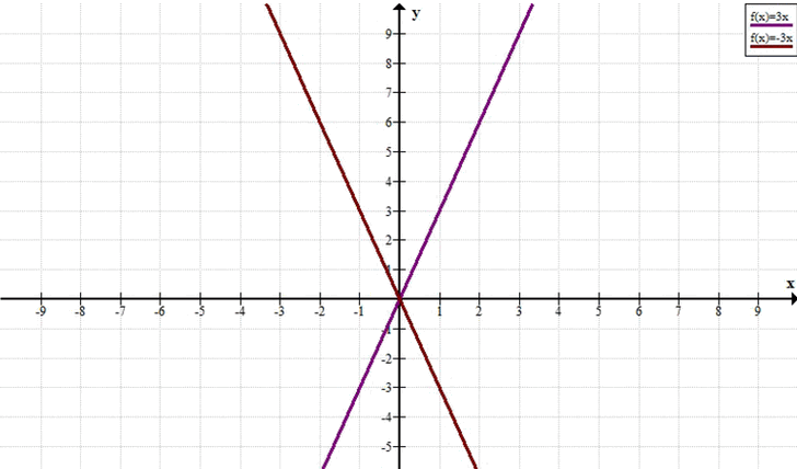Две пересекающиеся прямые \( y = 3x \) и \( y = -3x \).