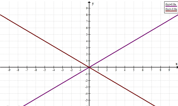 Две пересекающиеся прямые \( y = \frac{4}{5}x \) и \( y = -\frac{4}{5}x \).