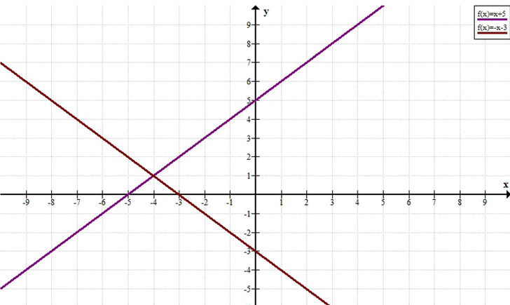 Решение: прямые \( y = x + 5 \) и \( y = -x — 3 \).