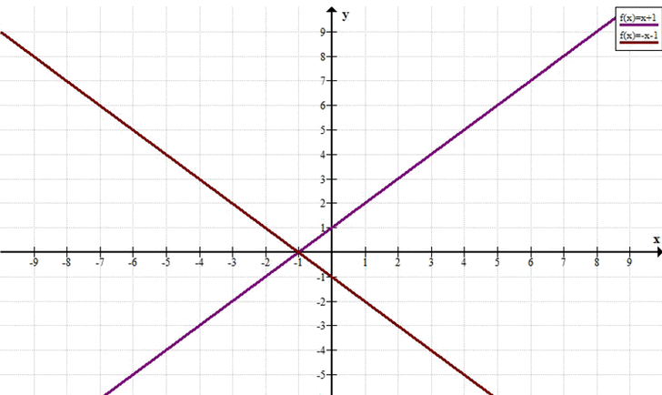 Решение: объединение двух прямых \( y = x + 1 \) и \( y = -x — 1 \).