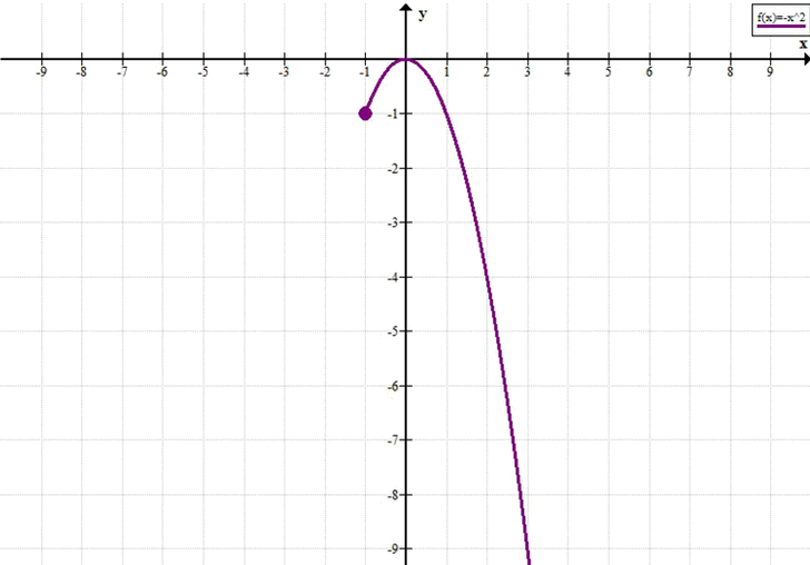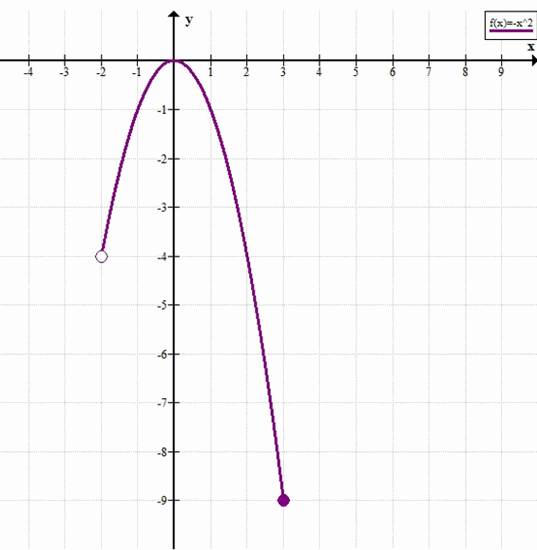 Наибольшего значения нет, потому что при приближении \(x\) к \(-2\) слева значение \(y = x^2\) приближается к \(4\), но само значение \(x = -2\) не включено, и достичь \(y = 4\) нельзя. Аналогично, при \(x \to 1^{-}\) значение \(y \to 1\), что меньше 4. Таким образом, функция может быть сколь угодно близка к 4, но не достигает ни 4, ни любого максимального значения на этом открытом интервале.