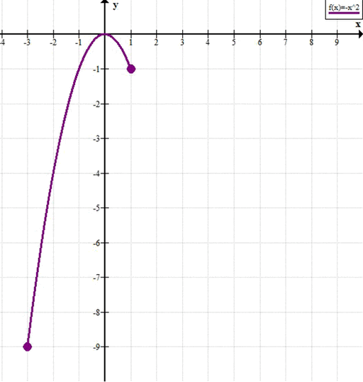 г) На \([-3; 1]\): наименьшее значение \(0\), наибольшее значение \(9\).