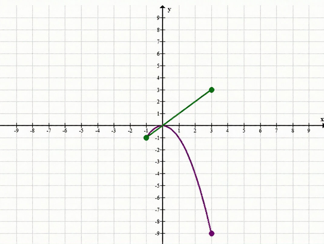 2. Анализ функции \(y = x\) на отрезке \([-1; 3]\).