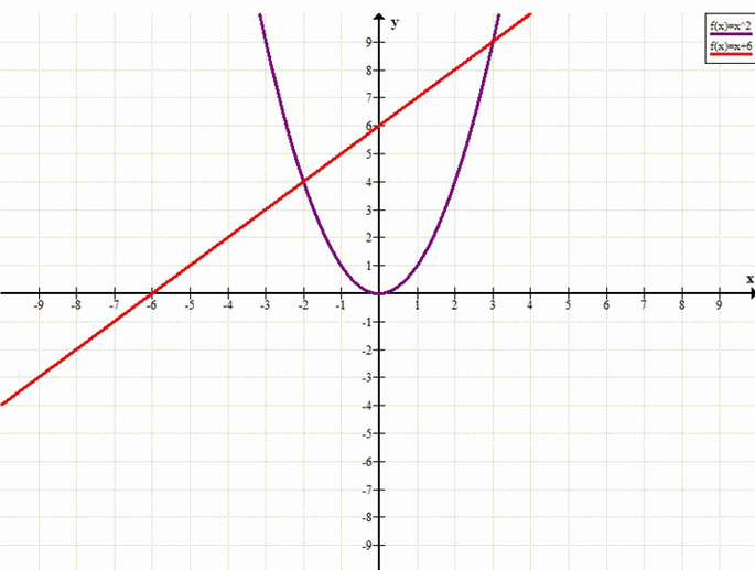 а) х² = х + 6; б) -х² = х — 2; в) х² = х + 2; г) -х² = х — 6.