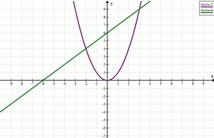 Точки пересечения этих графиков (параболы и прямой) дают решения исходного уравнения. Чтобы найти их аналитически, подставим одно выражение в другое — но так как мы уже выразили \(x^2\), достаточно решить квадратное уравнение напрямую: