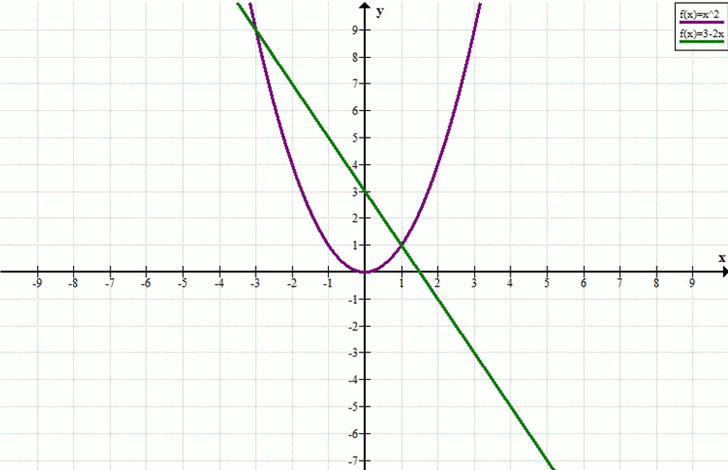 y = x^2 \quad \text{и} \quad y = 3 — 2x.