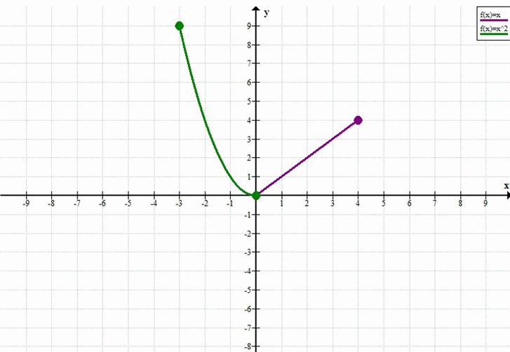 \( y = \begin{cases} x^2, & \text{если } -3 \le x \le 0 \\ x, & \text{если } 0 \le x \le 4 \end{cases} \)