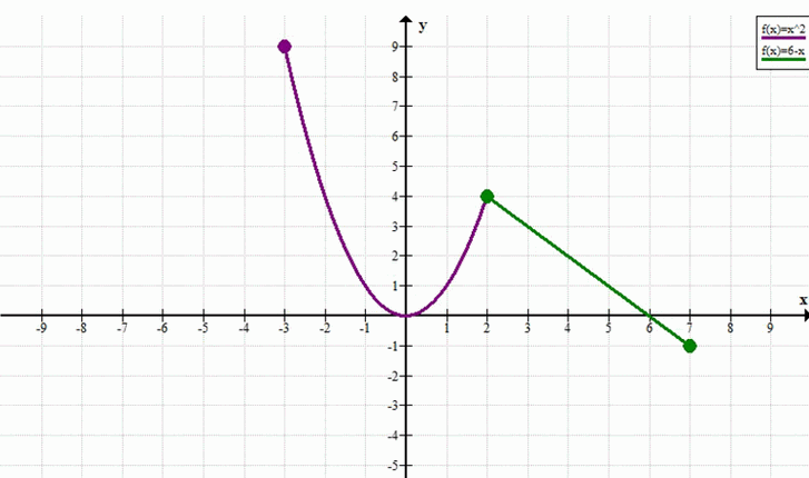 \( y = \begin{cases} x^2, & \text{если } -3 \le x < 2 \\ 6 — x, & \text{если } 2 \le x \le 7 \end{cases} \)