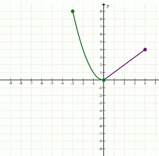 — На отрезке \([-3; 0]\) — это квадратичная функция \(y = x^2\), график которой — часть параболы, ветви направлены вверх, вершина в точке \((0; 0)\).
