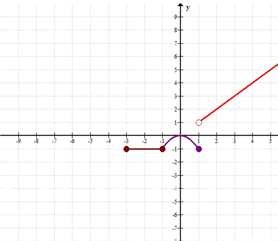 При \(x \to -1^+\), \(y \to -(-1)^2 = -1\). Точка \( (-1, -1) \) не включается (выколотая точка).