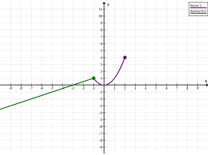 При каких значениях b уравнение f(x) = b, где f(x) = система \(\frac{x+3}{2}\), если х ≤ -1; x², если -1 < х ≤ 2, а) имеет один корень; б) имеет два корня; в) имеет три корня; г) не имеет корней?