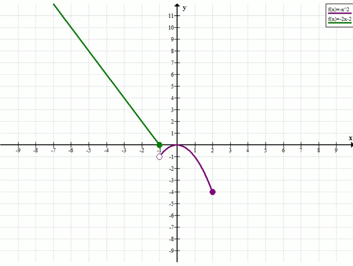 При каких значениях b уравнение f(x) = b, где f(x) = система -2х — 2, если х ≤ -1; -x², если -1 < х ≤ 2, а) имеет один корень; б) имеет два корня; в) имеет три корня; г) не имеет корней?