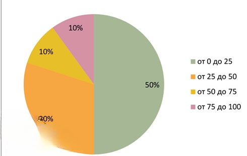 | Промежуток | от 0 до 25 | от 25 до 50 | от 50 до 75 | от 75 до 100 |