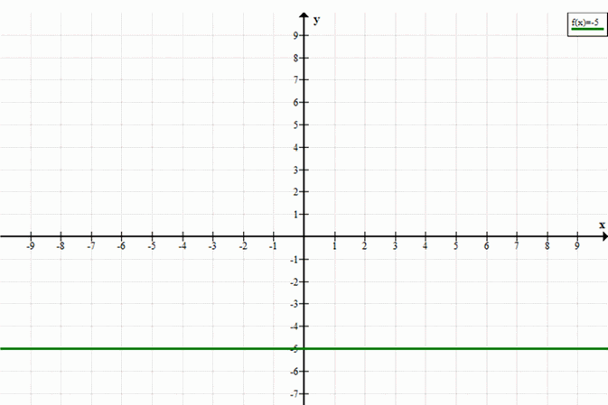 Описание: Это уравнение также представляет горизонтальную прямую, которая проходит через точку с ординатой -5.