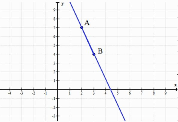 \( (x — 2) / (3 — 2) = (y — 7) / (4 — 7) \)