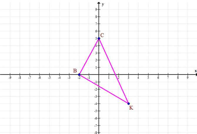 в) K(3; -4), K(-2; 0), С(0; 5) — координаты вершин