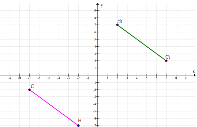 Условие: Построить отрезок, симметричный отрезку CH относительно начала координат.