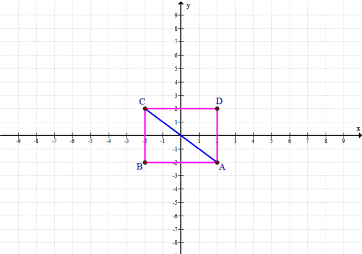 Известны координаты двух противоположных вершин квадрата ABCD: А(2; -2) и С(-2; 2). Найдите координаты двух других вершин. Сколько решений имеет задача?