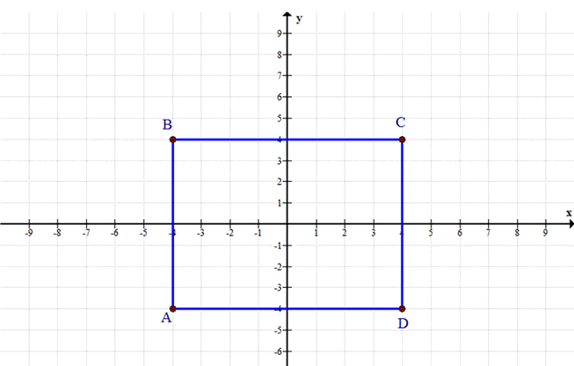 Квадрат со стороной 8 расположен так, что центр его находится в начале координат, а стороны параллельны осям координат. Определите координаты вершин квадрата.