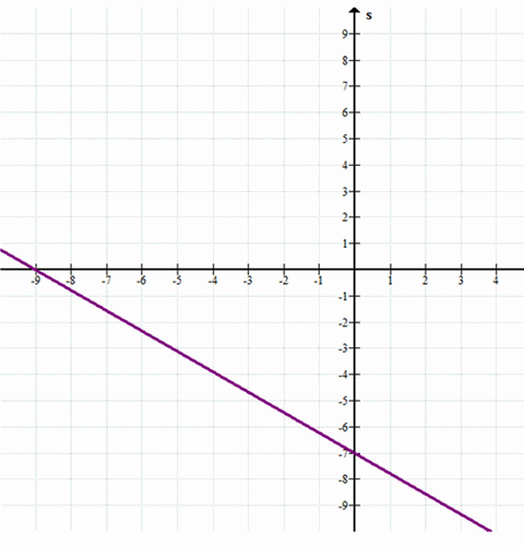 На координатной плоскости tOs постройте график уравнения: а) 7t + 9s + 63 = 0; б) 3t — 4\(s = 12\); в) 5t — 2\(s = 10\); г) 4t + 9s + 36 = 0.