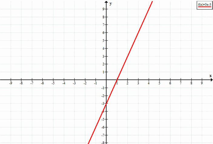 3. График: Линия будет проходить через точку (0, -3) и подниматься вверх вправо, проходя через другие точки, например, (1, 0) и (2, 3).