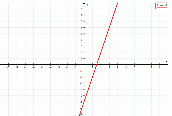 3. График: Линия будет проходить через точку (0, -6) и подниматься вверх вправо, проходя через другие точки, например, (1, -2) и (2, 2).