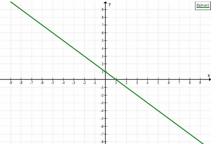 График: Линия будет проходить через точки (0, 1) и (1, 0), наклоняясь вниз.