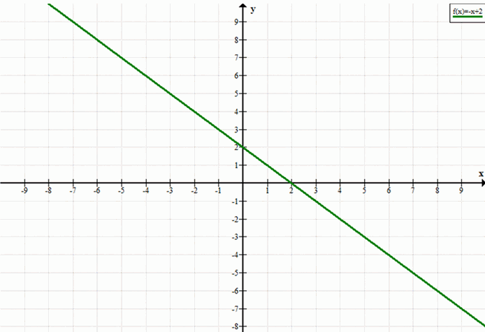 График: Линия будет проходить через точки (0, 2) и (2, 0), наклоняясь вниз.