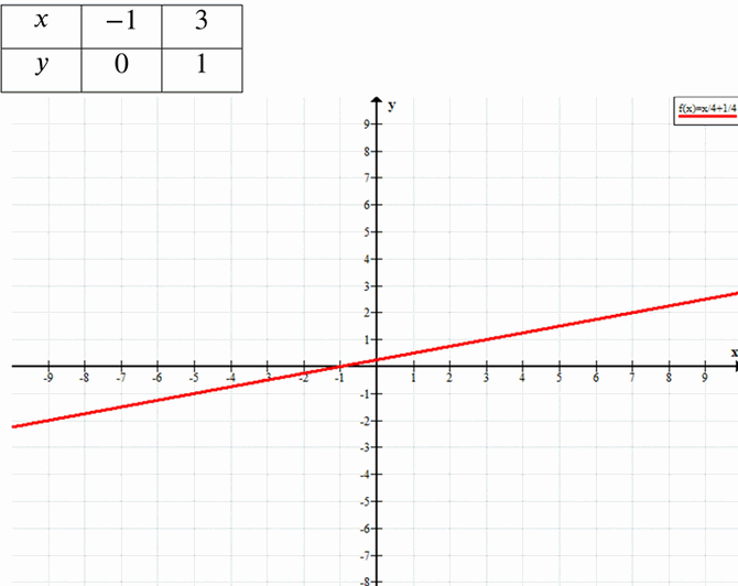 — \( x = -4 \): \( y = \frac{1}{4}(-4) + \frac{1}{4} = -1 \) → \( (-4, -1) \)
