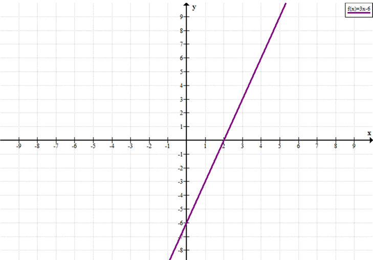 \(y = 0\), тогда \(0 = 3x — 6\), \(3x = 6\), \(x = 2\)