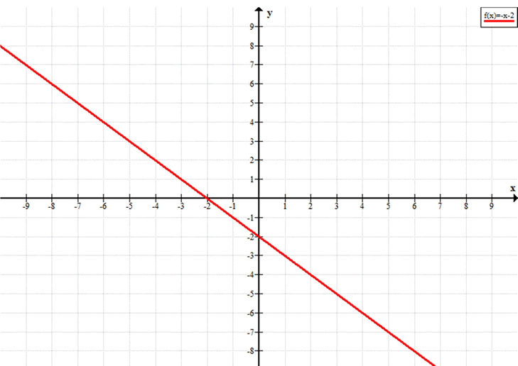 Постройте график линейной функции у = -х — 2 и с его помощью решите неравенство: а) -x — 2 > 0; б) -х — 2 < = 0; в) -х — 2 < 0; г)-х-2 > =0.