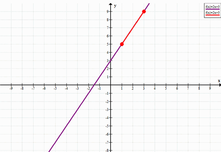 Строим отрезок от \((1; 5)\) до \((3; 9)\).