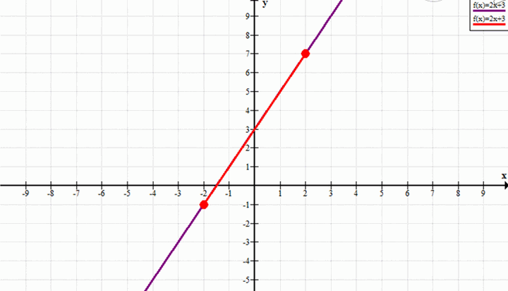 Строим отрезок от \((-2; -1)\) до \((2; 7)\).