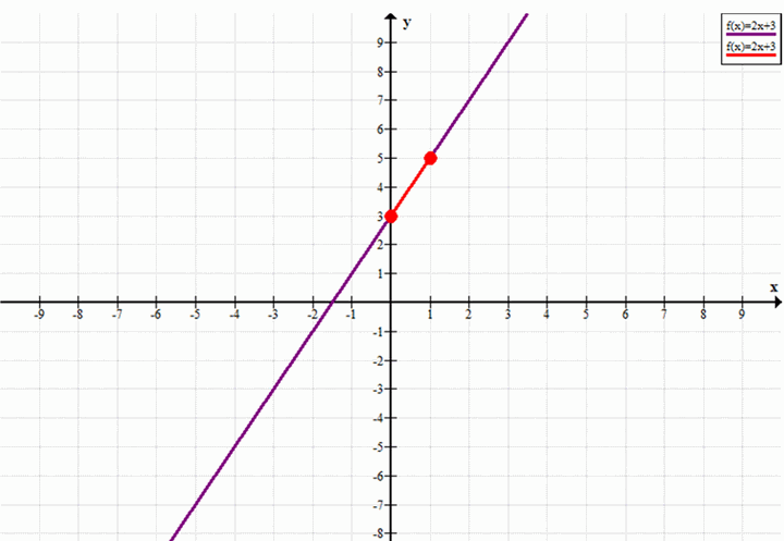 Постройте график линейной функции у = 2х + 3 и выделите его часть, соответствующую заданному промежутку оси х: а) [0; 1]; б) [-2; 2]; в) [1; 3]; г) [-1; 1].