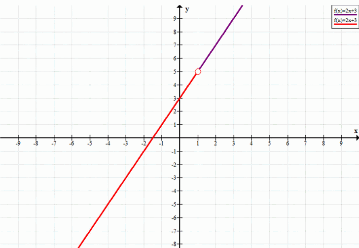 — На графике это будет вся линия до точки (1, 5), не включая её.