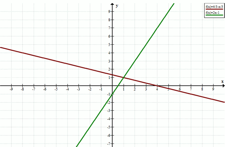 Построим графики функций \(y = \frac{4 — x}{3}\) и \(y = 2x — 1\).