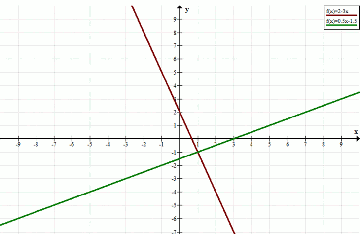 Условие: Решить графически систему уравнений \(3x + y = 2\) и \(x — 2y = 3\).